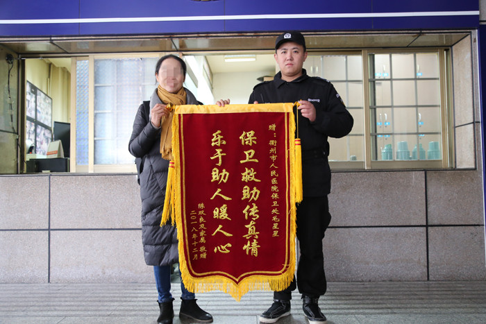 “真的太感謝你了,如果沒有你,我都不敢想象我家先生現(xiàn)在會(huì)是什么樣!”12月28日下午,繆女士帶著錦旗來到我院保衛(wèi)處,親手將錦旗送到了保安毛星星的手中?!斑@是我職業(yè)本能反應(yīng),也是我應(yīng)該做的……”收到錦旗的毛星星略帶笑意,微低下了頭,臉上微微泛紅,連連說著這兩句話。