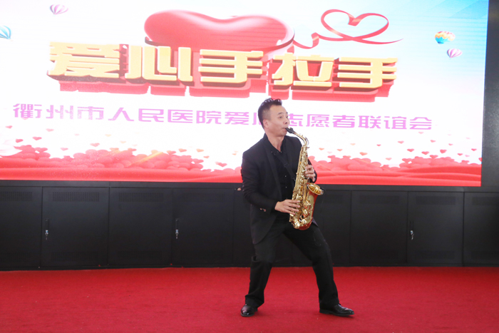 “浙西薩克斯王子”美稱的鄭新華老師應邀為志愿者們獻上薩克斯獨奏《歌聲與微笑》