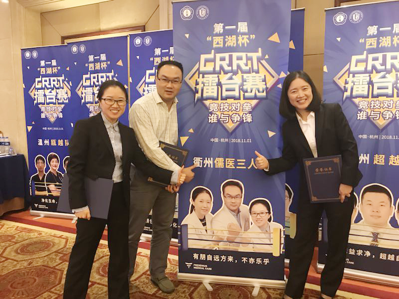 重癥醫(yī)學科羅建副主任醫(yī)師、王丹瓊主治醫(yī)師和盧俊梅副主任護師組成“衢州儒醫(yī)三人”組合,在浙江省第一屆“西湖杯”血液凈化擂臺賽上獲二等獎