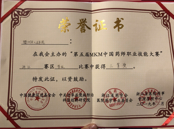 【喜報(bào)來襲】我院榮獲“第五屆MKM中國(guó)藥師職業(yè)技能大賽”浙江賽區(qū)晉級(jí)賽二等獎(jiǎng)