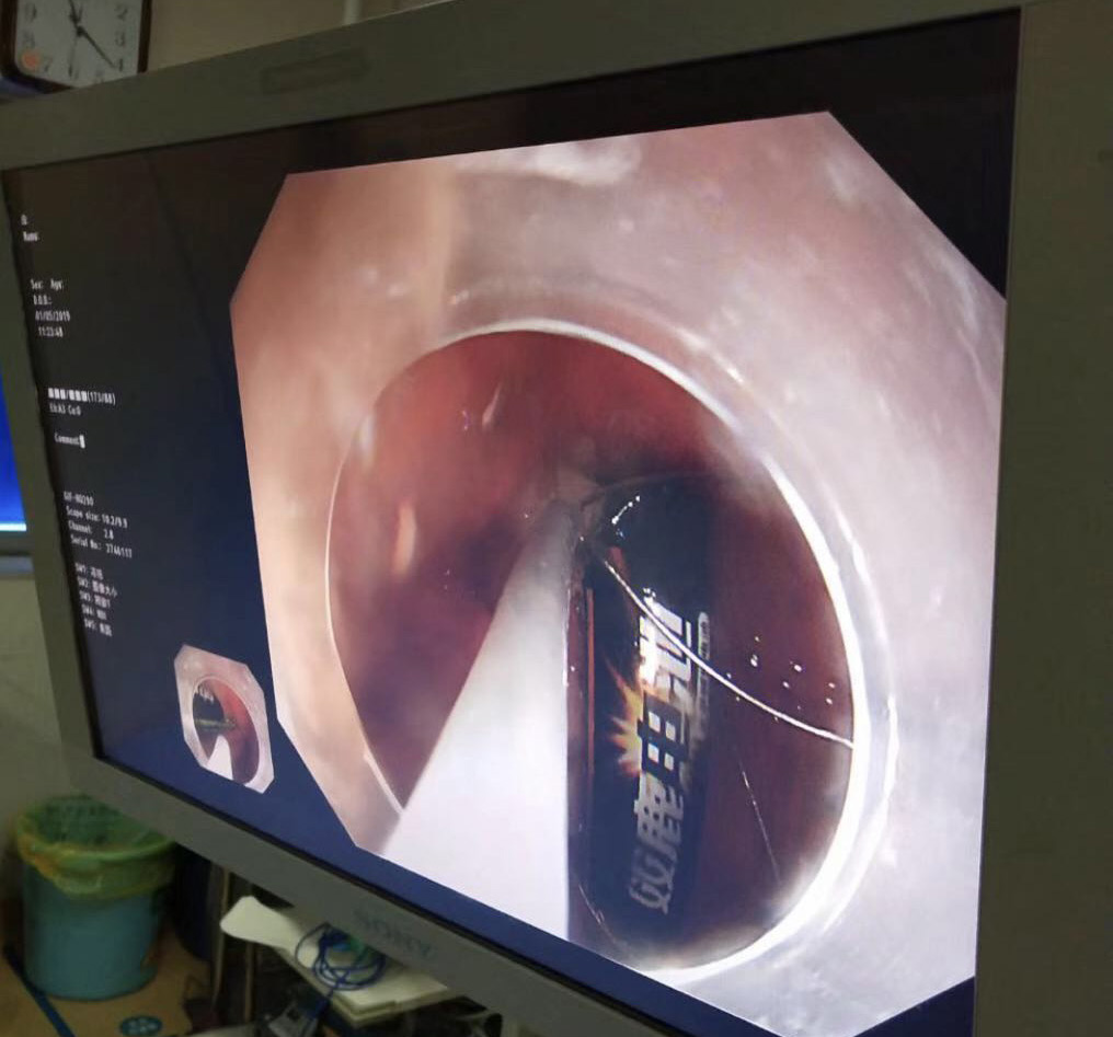 內(nèi)鏡下取出的七號電池