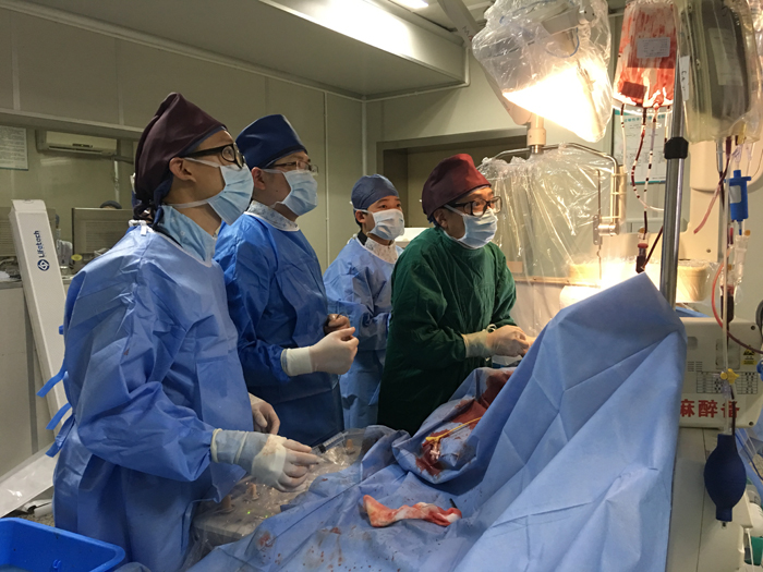 陸煒帶領(lǐng)團隊醫(yī)護人員根據(jù)制定的手術(shù)方案,切開游離一側(cè)股動脈,穿刺造影,術(shù)中造影的結(jié)果讓現(xiàn)場的大家倒吸了口涼氣。
