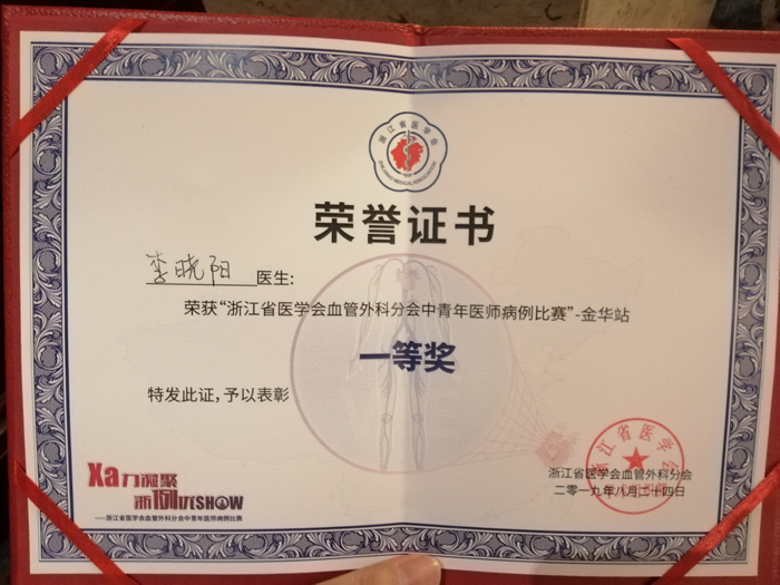 我院血管外科李曉陽醫(yī)生榮獲“浙江省醫(yī)學(xué)會血管外科分會中青年醫(yī)師病例大賽”金華站一等獎