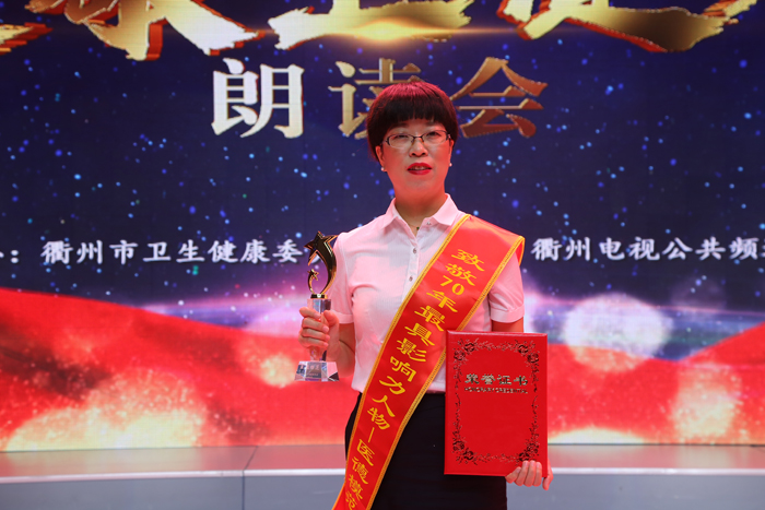 為慶祝中華人民共和國(guó)成立70周年,生動(dòng)反映全市衛(wèi)生健康事業(yè)取得的新進(jìn)展,進(jìn)一步弘揚(yáng) “敬佑生命、救死扶傷、甘于奉獻(xiàn)、大愛(ài)無(wú)疆”的精神風(fēng)貌。9月25日晚,衢州市衛(wèi)健委舉行“衢州市衛(wèi)生健康系統(tǒng)最具影響力衛(wèi)健人”表彰大會(huì),我院院長(zhǎng)葉金林、前任院長(zhǎng)陳震宏榮獲“衢州市最具影響力衛(wèi)健人——醫(yī)改先鋒”榮譽(yù)稱(chēng)號(hào),耳鼻咽喉科主任蘭金山、門(mén)急診護(hù)士長(zhǎng)邵微穎榮獲“衢州市最具影響力衛(wèi)健人——醫(yī)德模范”榮譽(yù)稱(chēng)號(hào),心血管內(nèi)科主任醫(yī)師俎德玲榮獲“衢州市最具影響力衛(wèi)健人——健康衛(wèi)士”榮譽(yù)稱(chēng)號(hào)。