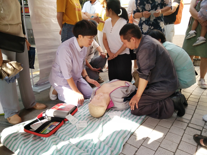 自9月20日開始,我院分別在本院門診廣場(chǎng)、開化縣華埠鎮(zhèn)金星村、九華鄉(xiāng)衛(wèi)生院開展了多種形式的義診活動(dòng)。來自三家醫(yī)療單位的專家為群眾宣講慢病篩查、營養(yǎng)健康相關(guān)知識(shí),現(xiàn)場(chǎng)進(jìn)行心肺復(fù)蘇操作示范,手把手指導(dǎo)民眾進(jìn)行規(guī)范化練習(xí)。