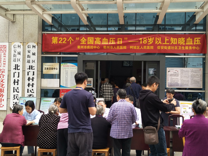 為了提高廣大群眾對(duì)高血壓危害健康嚴(yán)重性的認(rèn)識(shí),保障人民群眾身體健康,,普及高血壓病的預(yù)防宣教及健康知識(shí),提高公眾的高血壓知曉率。10月9日上午,我院聯(lián)合衢州市疾控中心、柯城區(qū)人民醫(yī)院、信安街道社區(qū)衛(wèi)生服務(wù)中心在信安街道北門村文化禮堂舉辦專題講座及義診活動(dòng)。防保處、心內(nèi)科、神經(jīng)內(nèi)科等科室多名醫(yī)務(wù)人員參加了此次義診宣教活動(dòng)。