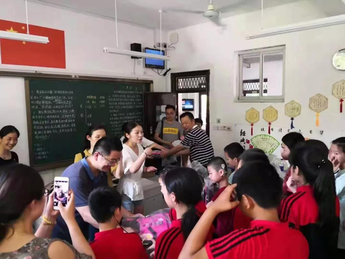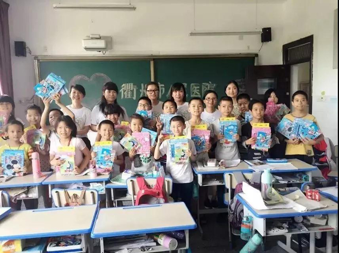 2018年5月18日,支部黨員醫(yī)護(hù)工作者為孩子們送上書(shū)籍和學(xué)習(xí)用品。