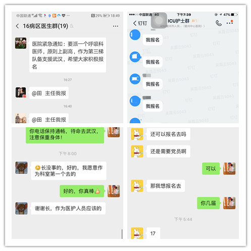 “我是黨員我報名”“我還未成家,沒有牽掛”“我不回家過年”……科室里醫(yī)生護士積極響應(yīng),短短幾分鐘,微信群里報名參加支援湖北疫情防控的隊伍不斷壯大。