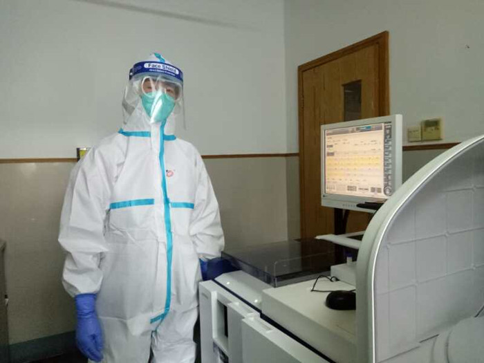 佩戴防護(hù)用具、接收處理標(biāo)本、調(diào)試儀器、標(biāo)本前期準(zhǔn)備工作、質(zhì)控……從早上九點(diǎn)半開始,直到完成三四十個標(biāo)本的常規(guī)和生化檢驗(yàn),一天的檢驗(yàn)工作才算接近尾聲,最后做好終末消毒,回到宿舍吃午餐,已經(jīng)是下午4點(diǎn)。