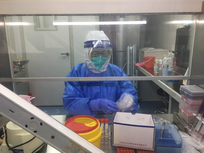 “第一天穿上防護(hù)服走進(jìn)實(shí)驗(yàn)室,就出現(xiàn)了干嘔現(xiàn)象,為了實(shí)驗(yàn)?zāi)軌蚶^續(xù)進(jìn)行下去,我一直克服困難,通過幾天的適應(yīng)現(xiàn)在,我已經(jīng)能很好地勝任這份工作?!焙怂釞z測醫(yī)生白永鳳說,“還好孩子大了,家里沒有后顧之憂,作為一名黨員,緊要關(guān)頭,我隨叫隨到!”
