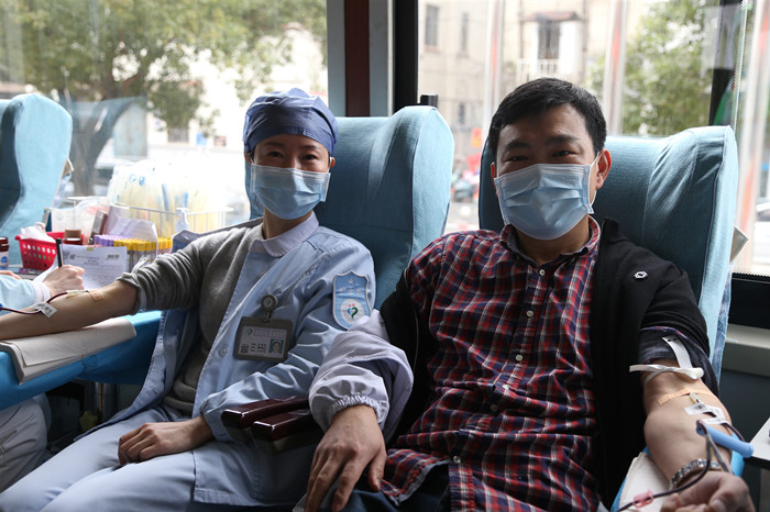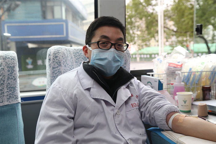 血液內(nèi)科主治醫(yī)師王剛因?yàn)樯眢w原因不能獻(xiàn)血,特地帶著他的妻子來參加。他說:“現(xiàn)在疫情嚴(yán)峻,用血緊張,我和妻子都是醫(yī)務(wù)工作者,很高興這個(gè)時(shí)候能盡一份微薄的力量?!?