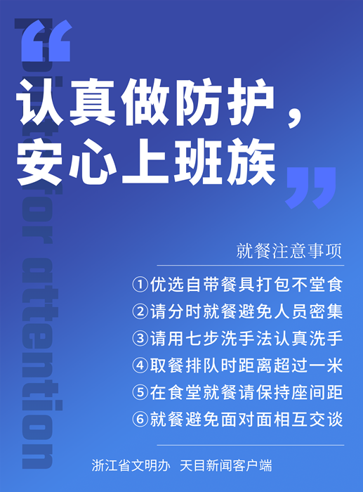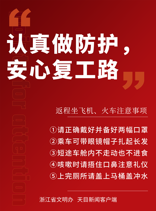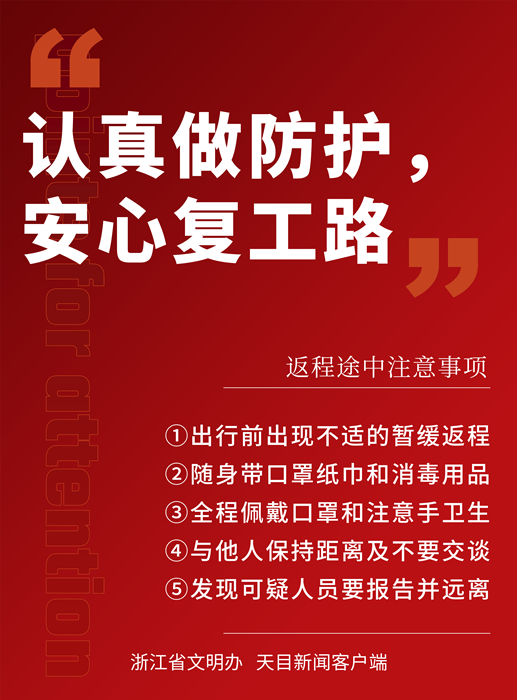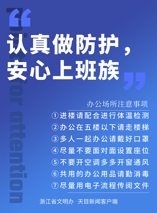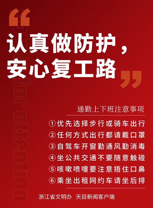 復(fù)工啦!防護(hù)措施做起來!安心工作不用愁! 文章來源:浙江省文明辦 天目新聞客戶端 作者: 點(diǎn)擊數(shù):6791 更新時間:2020-02-20 上一篇: 預(yù)防新型冠狀病毒感染,營養(yǎng)科專家教您如何吃! 下一篇: 手機(jī)可能傳播新冠病毒!專家演示1分鐘“手機(jī)消毒法”
