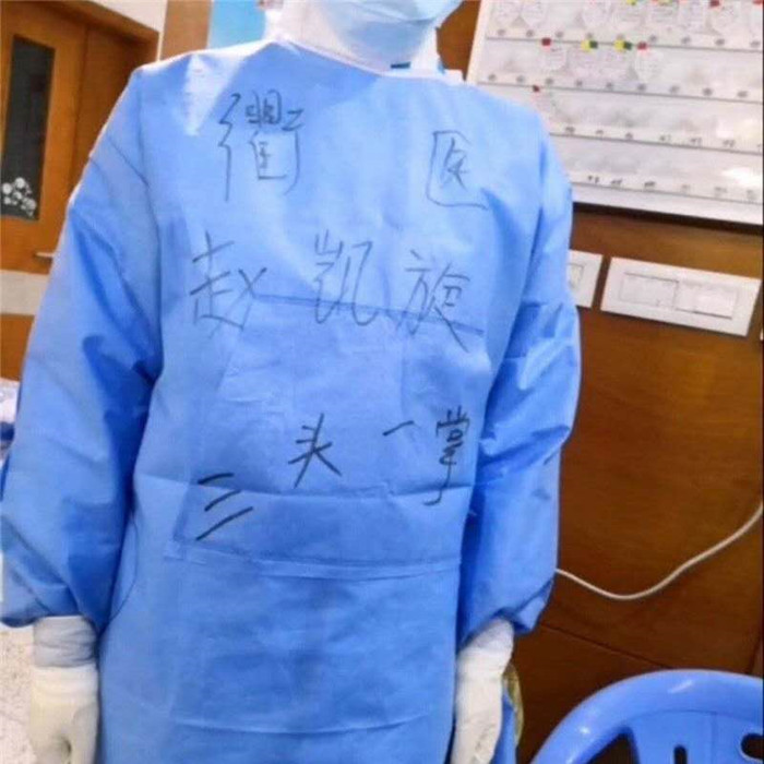 2月18日,援助武漢的第24天,趙凱旋和同在19樓的醫(yī)護人員“腦洞大開”,紛紛把想吃的寫在了防護服上。東坡肉、羊肉泡饃、胡辣湯……形形色色的家鄉(xiāng)風味成了防護服上一道獨特的風景。來自我們大衢州的趙凱旋,把衢州特色美食“三頭一掌”寫在防護服前面。寫的是美食,寄托的是對家鄉(xiāng)的想念。