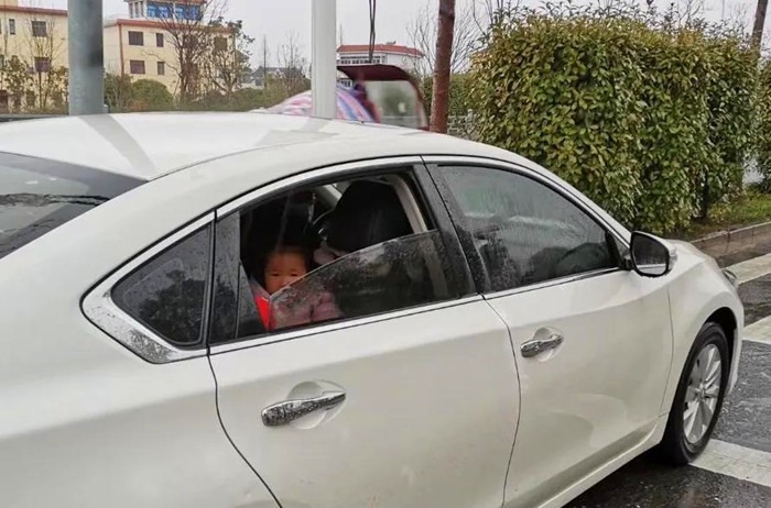 陰雨天,空曠的馬路邊,隔著車窗,站在5米開外,遠(yuǎn)遠(yuǎn)望著坐在車?yán)锏呐畠?,輕喚其名,小女孩卻無動于衷,不知道對面站著的,這個戴著口罩的阿姨是誰……