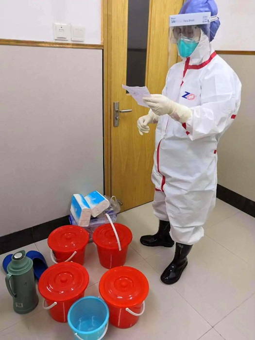 對于進(jìn)駐隔離病房,方琪做好了充分的心理準(zhǔn)備。大年初二,接到通知,她簡單整理生活用品,匆匆別過女兒,火速奔向工作崗位。隔離病房成立初期,面對未知的病毒、陌生的布局、全新的操作流程,困難是不言而喻的?!叭绾巫尣⒓鐘^戰(zhàn)的同事更快地適應(yīng)新的工作環(huán)境?”“如何做好自我防護(hù)避免感染?”“怎樣保障護(hù)理操作高效推進(jìn)?”沒有絲毫的顧慮,進(jìn)駐隔離病房后,方琪思考最多的是怎樣優(yōu)質(zhì)高效地開展護(hù)理診療。