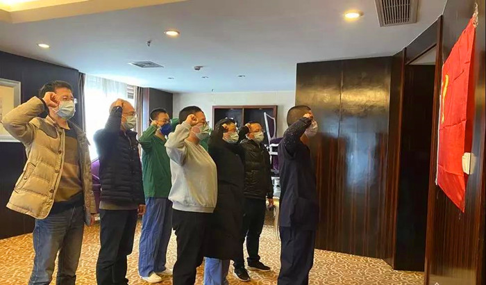 2月21日,浙江省第三批援鄂醫(yī)療隊(duì)的第十八臨時(shí)黨支部成立,柴東劍擔(dān)任黨支部書記。