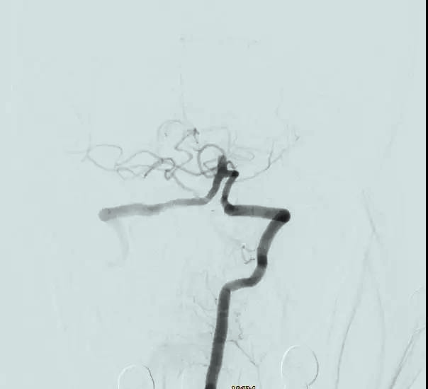 在神經(jīng)外科戴偉民主任的帶領(lǐng)下,李運(yùn)平、劉榮財(cái)醫(yī)生默契配合,團(tuán)隊(duì)協(xié)作為搶救生命爭(zhēng)分奪秒?!叭榧皠?dòng)脈置鞘,基底動(dòng)脈起始部完全閉塞。”腦血管造影再次印證葉女士危在旦夕?!霸偻硪环昼姡蠊豢霸O(shè)想!” DSA導(dǎo)管室,一場(chǎng)與時(shí)間賽跑的生命爭(zhēng)奪戰(zhàn)正在進(jìn)行。定點(diǎn)、介入,從放置取栓裝置到送達(dá)栓塞部位,每一個(gè)動(dòng)作都“重若千鈞”,終于在3毫米的動(dòng)脈導(dǎo)管內(nèi)完整取出5X3毫米的血栓,復(fù)查造影,顯示基底動(dòng)脈血流恢復(fù),取栓成功。而此時(shí),距離葉女士抵達(dá)DSA導(dǎo)管室,僅僅過去了20分鐘。