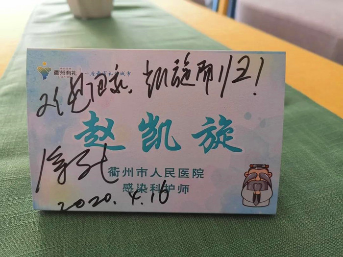 趙凱旋作為隊(duì)員代表,在儀式上發(fā)言:“不管怎么刮風(fēng),怎么下雨,太陽(yáng)總是要出現(xiàn)的。在我看來(lái),與其說(shuō)是我們帶給武漢人民希望,不如說(shuō)是武漢人民教會(huì)了我們?nèi)绾蚊鎸?duì)困境,這份面對(duì)暴風(fēng)雨的勇敢和堅(jiān)韌,如同金子般可貴,也終將成為我人生中的一筆寶貴的財(cái)富?!眲P旋用質(zhì)樸的話(huà)語(yǔ)講述在武漢奮戰(zhàn)的日夜,流露的真情深深地觸動(dòng)了大家,現(xiàn)場(chǎng)聽(tīng)眾眼中泛著淚光,這是凱旋的故事,更是在疫情火線(xiàn)奮戰(zhàn)的52名衢州醫(yī)療隊(duì)友的故事。