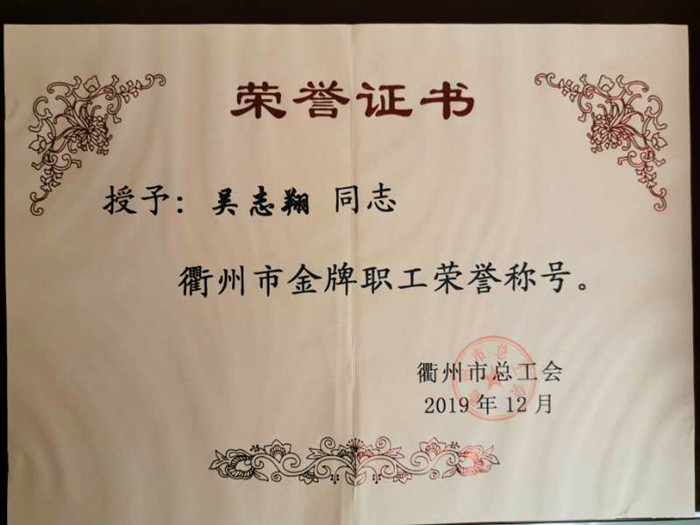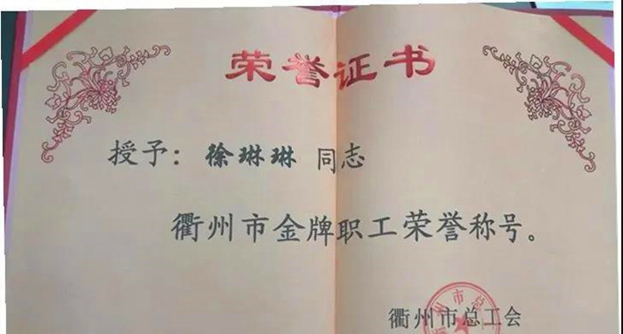 日前,從衢州市總工會(huì)傳來(lái)好消息,我院周金紅、徐琳琳、吳志翔喜獲衢州市金牌職工榮譽(yù)稱(chēng)號(hào)。