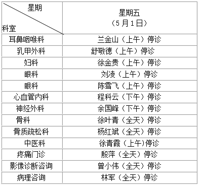 3、5月1日靜脈護(hù)理專科門診下午停診。