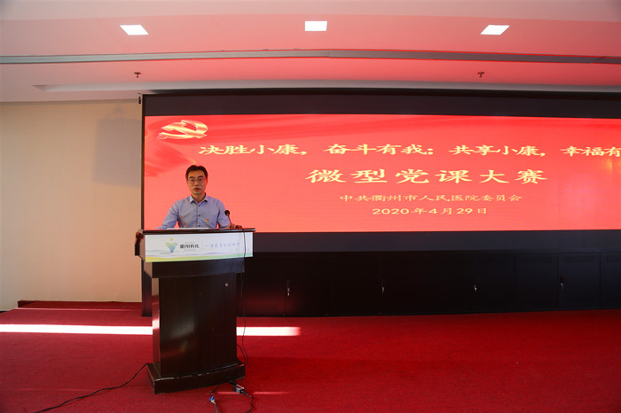 為深入學(xué)習(xí)貫徹習(xí)近平新時代中國特色社會主義思想,營造 “決戰(zhàn)脫貧攻堅(jiān)、決勝全面小康”的濃厚氛圍,充分展示我院廣大黨員干部職工風(fēng)采,4月29日,院黨委組織舉辦了“決勝小康,奮斗有我;共享小康,幸福有我”微黨課比賽,經(jīng)過前期篩選,各支部共推選出15個支部選手參加比賽。醫(yī)院黨委書記徐天才,黨委副書記、院長葉金林,黨委委員、紀(jì)委書記曹敏,工會主席周見以及各支部黨員代表和中層干部參加了本次活動。