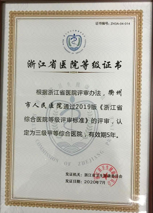 根據(jù)《浙江省醫(yī)院評審辦法》、《浙江省綜合醫(yī)院等級評審標(biāo)準(zhǔn)(2019版)》,7月7日,浙江省衛(wèi)生健康委公布首批浙江省第四周期綜合醫(yī)院等級評審結(jié)果,我院作為衢州地區(qū)唯一一家三級甲等綜合醫(yī)院,成為全省首批通過評審的17家醫(yī)院之一。