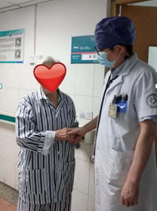 圖為吳老太太出院時(shí)與屠主任合影