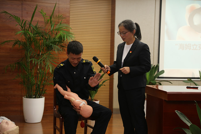 “低血糖時(shí)莫要慌,糖果救命備身上!”“異物窒息怎么辦?海姆立克來幫忙。”“掌握心肺復(fù)蘇,你們的雙手也可以拯救生命?!眮碜晕以簝?nèi)分泌科、ICU、急診科的4名8090新時(shí)代理論宣講員為企業(yè)員工帶來實(shí)用的急救技能。