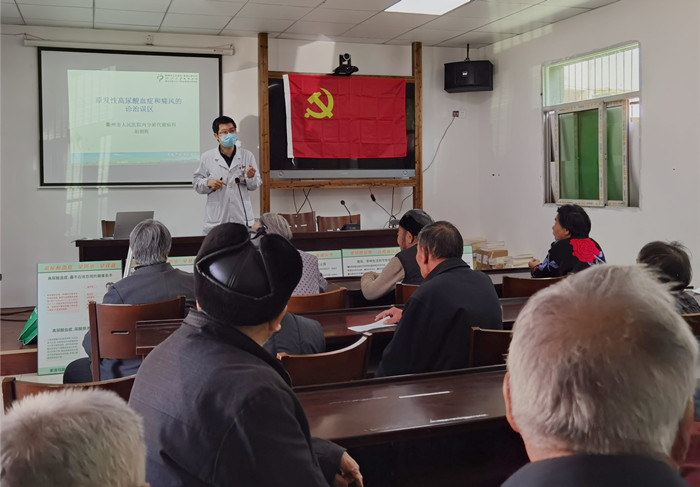 活動(dòng)現(xiàn)場(chǎng),內(nèi)分泌代謝病科主任醫(yī)師胡朝暉、副主任醫(yī)師萬金星提供痛風(fēng)咨詢服務(wù),護(hù)士們免費(fèi)為村民監(jiān)測(cè)尿酸、測(cè)量血壓和血糖,發(fā)放健康宣教資料等。專家們還針對(duì)高尿酸保健常識(shí)、疾病癥狀、用藥注意事項(xiàng)、飲食指導(dǎo)等方面開展健康講座,在場(chǎng)的痛風(fēng)患友受益匪淺。
