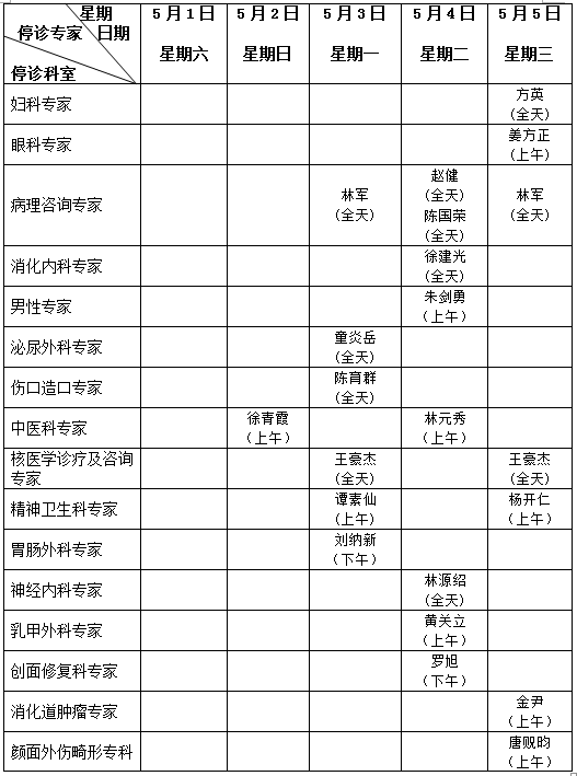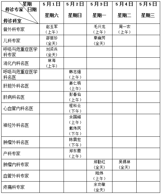 4.靜脈護(hù)理專科門診:5月3日下午停診。