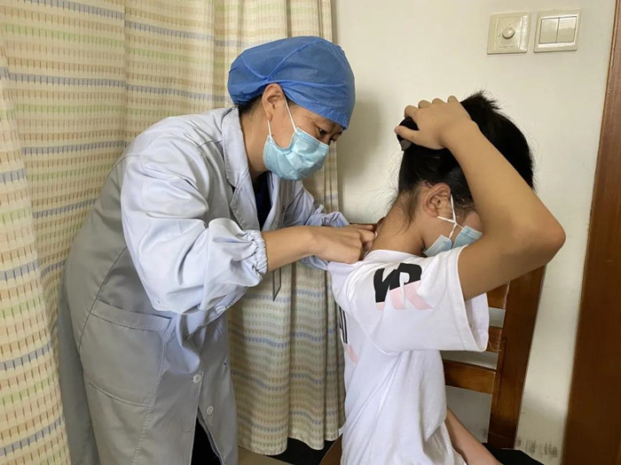 正值暑假,還有不少小朋友也加入敷貼隊伍,12歲的安安小朋友就是其中之一。據(jù)安安媽媽介紹,這已經(jīng)是安安第三年來敷貼了,孩子一早就和媽媽來到現(xiàn)場等待敷貼,“孩子患有鼻炎,冬天的時候經(jīng)常打噴嚏,特別不舒服,還影響學(xué)習(xí),自從體驗了‘三伏貼’后,打噴嚏明顯減少了,還會堅持來貼的?!?