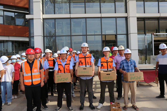 目前,四省邊際中心醫(yī)院項(xiàng)目現(xiàn)場(chǎng)每天有1000多名一線職工頂著高溫,堅(jiān)守一線。曹敏書記仔細(xì)詢問工程建設(shè)進(jìn)展情況,將防暑降溫用品一一遞到職工手上,為他們送上關(guān)心關(guān)愛,并叮囑高溫作業(yè)要做好防護(hù)措施,注意安全,做到勞逸結(jié)合。