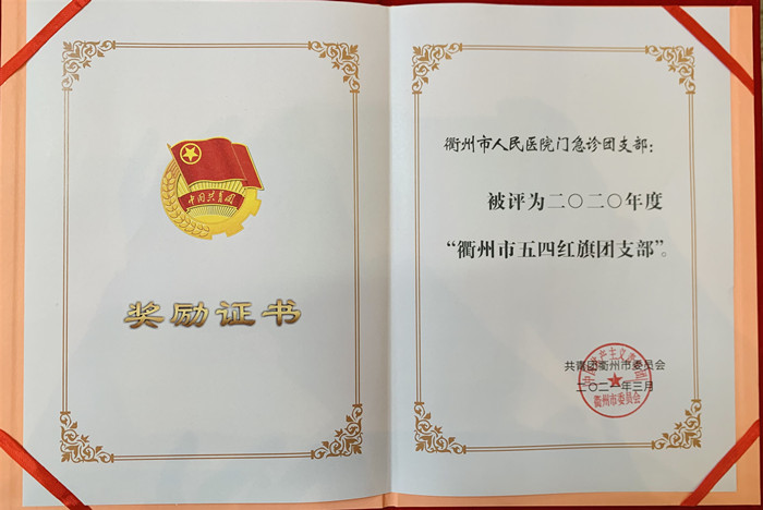 我院門急診團(tuán)支部榮獲2020年度“衢州市五四紅旗團(tuán)支部”稱號(hào)