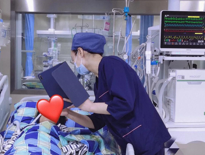 發(fā)現(xiàn)她情緒低落,護士立即進行心理安撫,病情稍穩(wěn)定后用iPad幫助周阿姨和家屬進行視頻探視。