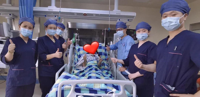 經(jīng)過三天的治療,周阿姨沒有出現(xiàn)胸悶氣閉,精氣神也好了許多,即將轉(zhuǎn)到呼吸與危重癥醫(yī)學(xué)科進行進一步治療。在EICU周阿姨開心地與醫(yī)護人員合影,“短短三天,深深地感受到了你們的無微不至,非常感謝你們!”