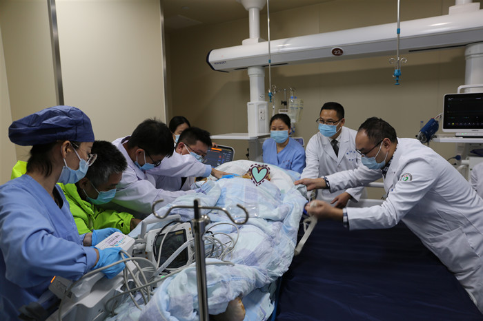 此次轉(zhuǎn)運(yùn)的14位重癥患者中,有3位患者屬于特重癥,分別是張力性氣胸,心梗和肺?;颊?。