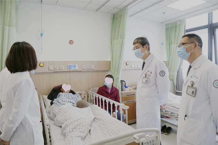 隨后,院領(lǐng)導(dǎo)分別帶隊來到新入住的病區(qū),為患者和醫(yī)護(hù)人員送上親切的問候。