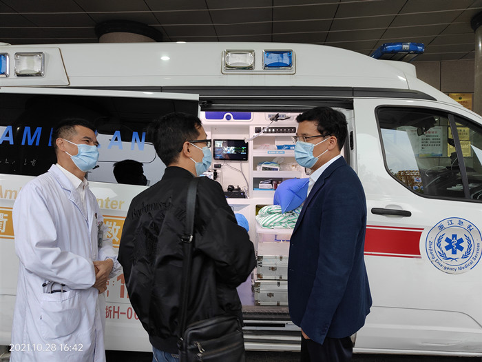 10月28日下午,浙江省衛(wèi)健委副主任俞新樂、醫(yī)政醫(yī)管與藥物政策處處長(zhǎng)付鐵紅一行來到衢州市人民醫(yī)院調(diào)研5G智慧急救系統(tǒng)。市衛(wèi)健委黨委書記、主任廖利軍,副書記、副主任徐天才,市急救中心副主任龔慧飛,市人民醫(yī)院副院長(zhǎng)何冬娟以及醫(yī)院相關(guān)部門負(fù)責(zé)人陪同。