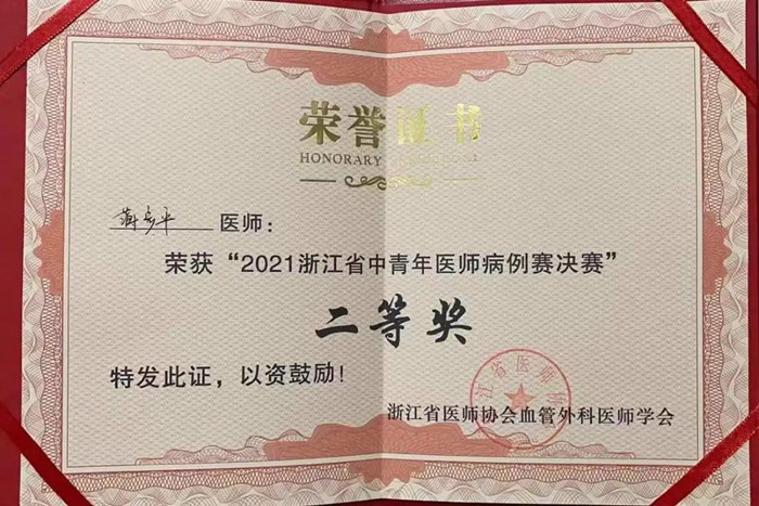 我院血管外科蔣步平醫(yī)生榮獲浙江省血管外科病例大賽總決賽二等獎(jiǎng)