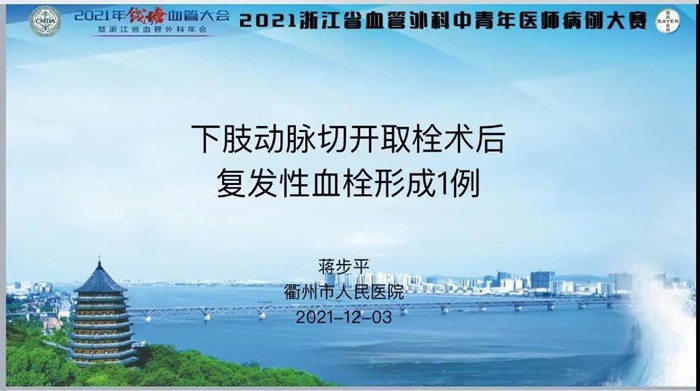 本次賽事邀請(qǐng)了浙江省各地市醫(yī)院的血管外科優(yōu)秀中青年醫(yī)生參加,在我院血管外科團(tuán)隊(duì)的共同努力下,蔣步平以《下肢動(dòng)脈切開(kāi)取栓術(shù)后復(fù)發(fā)性血栓形成1例》為題進(jìn)行病例分享,清晰的思路獲得專(zhuān)家的一致好評(píng)。