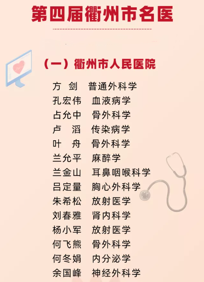 優(yōu)秀!我院43人獲評(píng)衢州市第四屆衢州市名醫(yī)、專家
