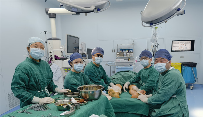 創(chuàng)面修復(fù)科王健團(tuán)隊為“膚生工程”救助患者實施雙下肢難愈性創(chuàng)面清創(chuàng)、穿支皮瓣轉(zhuǎn)移覆蓋與植皮術(shù)。