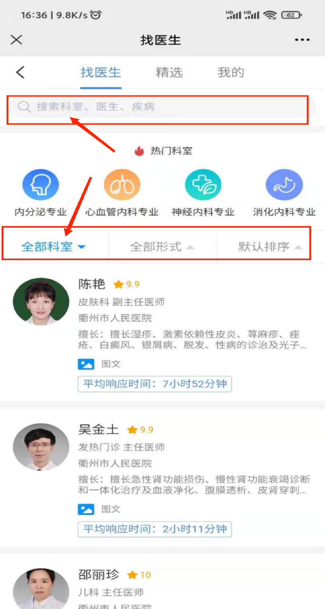 通過【搜索...】/【全部科室】選擇咨詢醫(yī)生