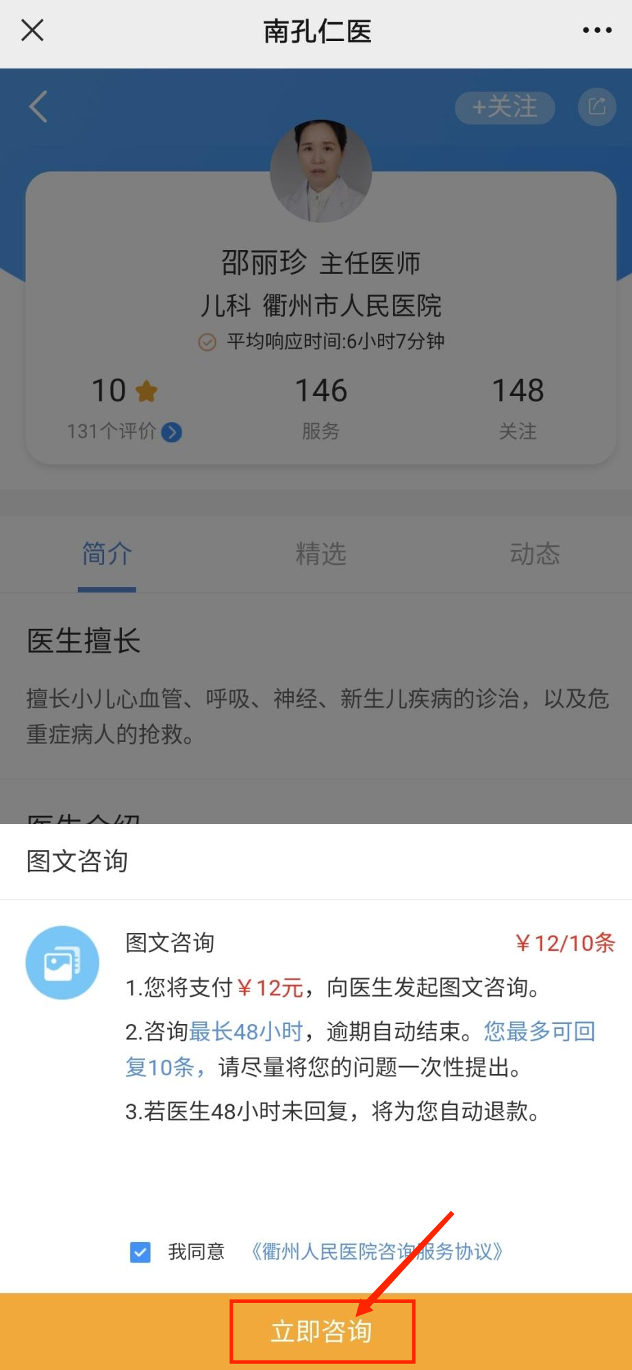 查看醫(yī)生【簡(jiǎn)介】,選擇【咨詢醫(yī)生...】