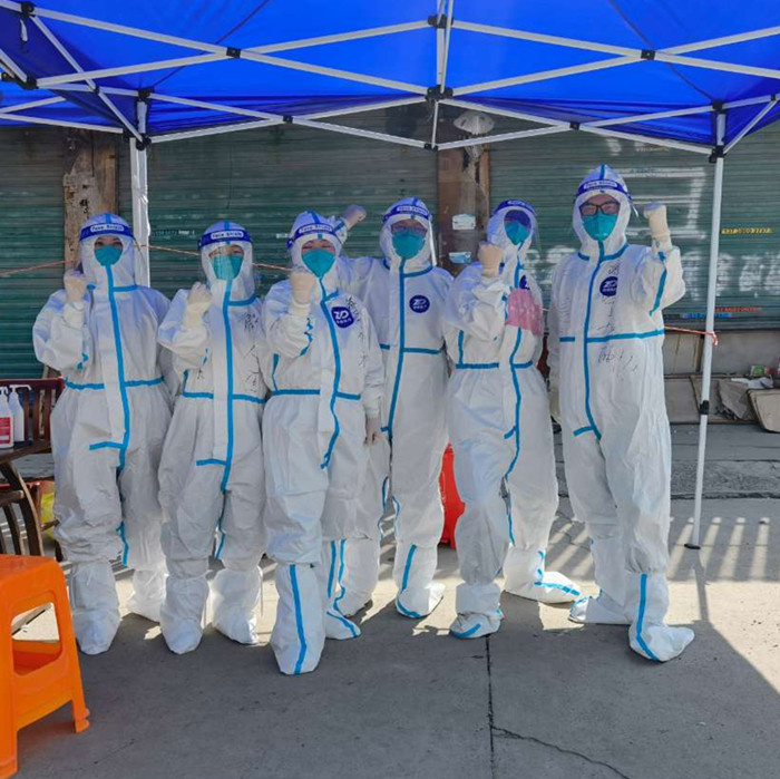 4月的上海,天氣陰晴不定,穿著防護(hù)服、佩戴雙層手套、N95口罩、面罩、乳膠手套、防水靴套,“全副武裝”后,援滬采樣隊員們將連續(xù)奮戰(zhàn)5-6個小時。穿上紙尿褲是常態(tài),一天里面至少有10多個小時不吃、不喝、不拉,他們經(jīng)歷了烈日驕陽下的高溫酷暑以及氣溫急劇下降后的大風(fēng)大雨…….