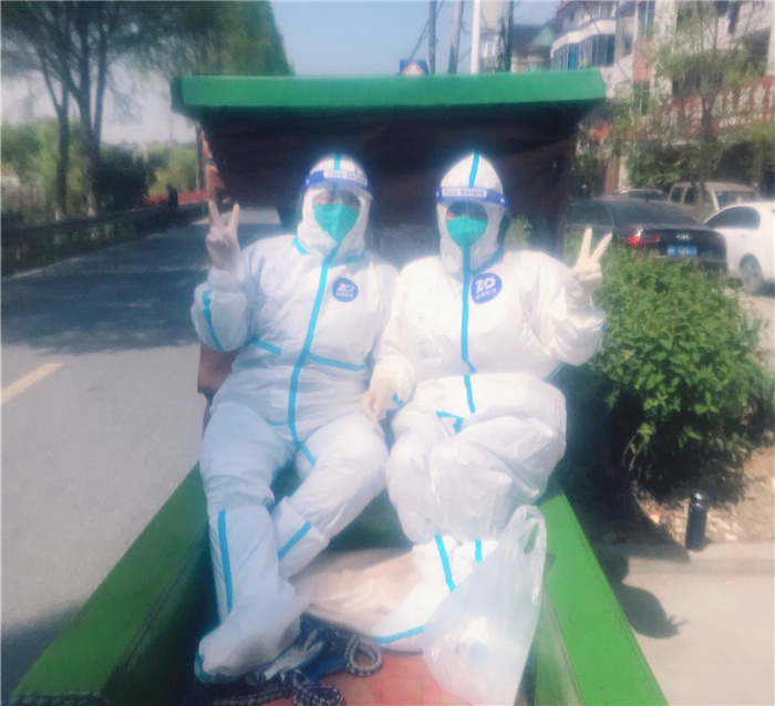 雖然十分辛苦,但衢醫(yī)“大白”們想著法子制造歡樂時光,為了爭取更多的采樣時間,“大白”們一起坐上“敞篷車”出發(fā)采核酸!