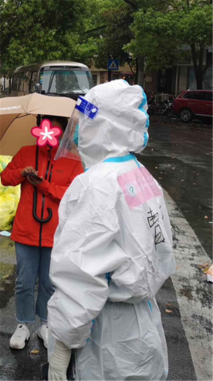 采樣過程中,衢醫(yī)“大白”總是聽到上海市民說“辛苦了”、“謝謝你”“餓了吧!給你送點吃的”。