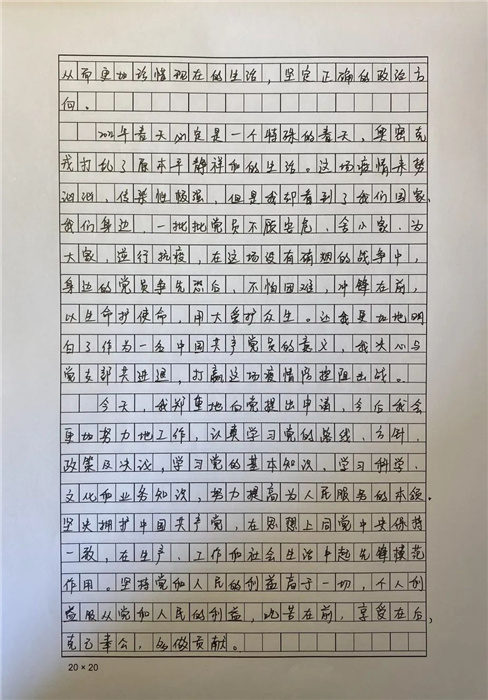 疫情當(dāng)前,黨員同志沖鋒在前,危難時刻挺身而出,這種英勇奮斗的精神深深感染著每個人。當(dāng)天,42名衢州市援滬醫(yī)療隊隊員有感而發(fā),在疫情一線寫下了入黨申請書,青年醫(yī)生楊子愷就是其中的一員。