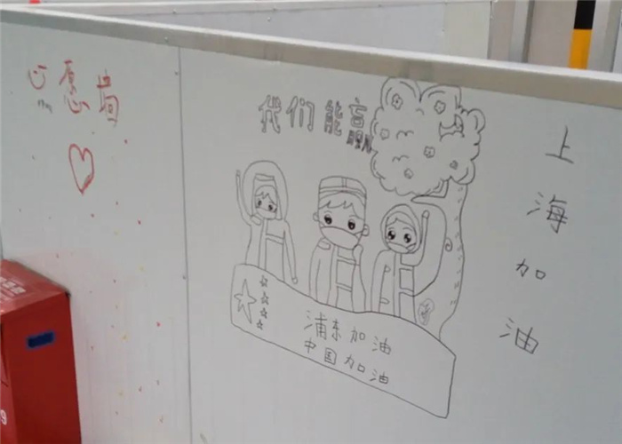 “上海加油、中國加油!”“待‘疫’霾散去,仰天大笑,共享春光!” “我們與你們同在,心在一起,愛在一起!”“寒冬終將過去,春花定會綻放,陽光總在風(fēng)雨后,勝利就在堅持中!”……在臨港方艙醫(yī)院有一面面心愿墻,墻上寫滿了患者和醫(yī)務(wù)人員的心愿,幫助患者積極樂觀地面對病情,給每一個戰(zhàn)疫一線的“大白”加油打氣!