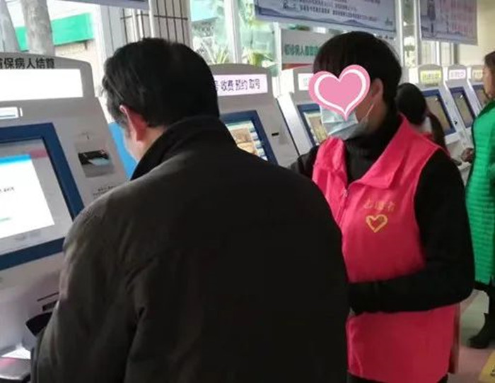 治療結(jié)束后的夏女士回到了工作崗位,因工作優(yōu)異,在2019年度被公司(央企)評為“優(yōu)秀員工”。工作之余,她加入了衢州市旗袍協(xié)會、康樂合唱團,并堅持每天鍛煉,練八段錦、打太極拳、跳廣場舞......更令人敬佩的是,她還加入了我院志愿者隊伍,“能夠幫助別人是一件非??鞓返氖虑?,一句謝謝,就是對我志愿工作的認可?!毕呐控撠?zé)導(dǎo)診服務(wù),指導(dǎo)患者使用自助掛號機。